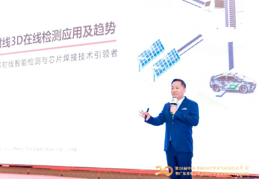 yabo.com鸭脖科技营销副总商卫在会议上分享了 “X射线3D在线检测在行业应用及趋势”的主题演讲,用浅显易懂的方式介绍了3D AXI发展的背景。围绕yabo.com鸭脖科技新一代在线3D CT检测设备AXI9000,商卫副总详细阐述了其高速高画质、检查领域广、高检出、智能化、数字化、高安全性等突出优势,成功解决了传统2D X射线检测无法解决的正反元件重叠、无法切层等行业痛点。AXI9000可广泛应用于车载、消费类电子、手机、半导体等领域,为各行业的智能制造提供了强大的技术支持。